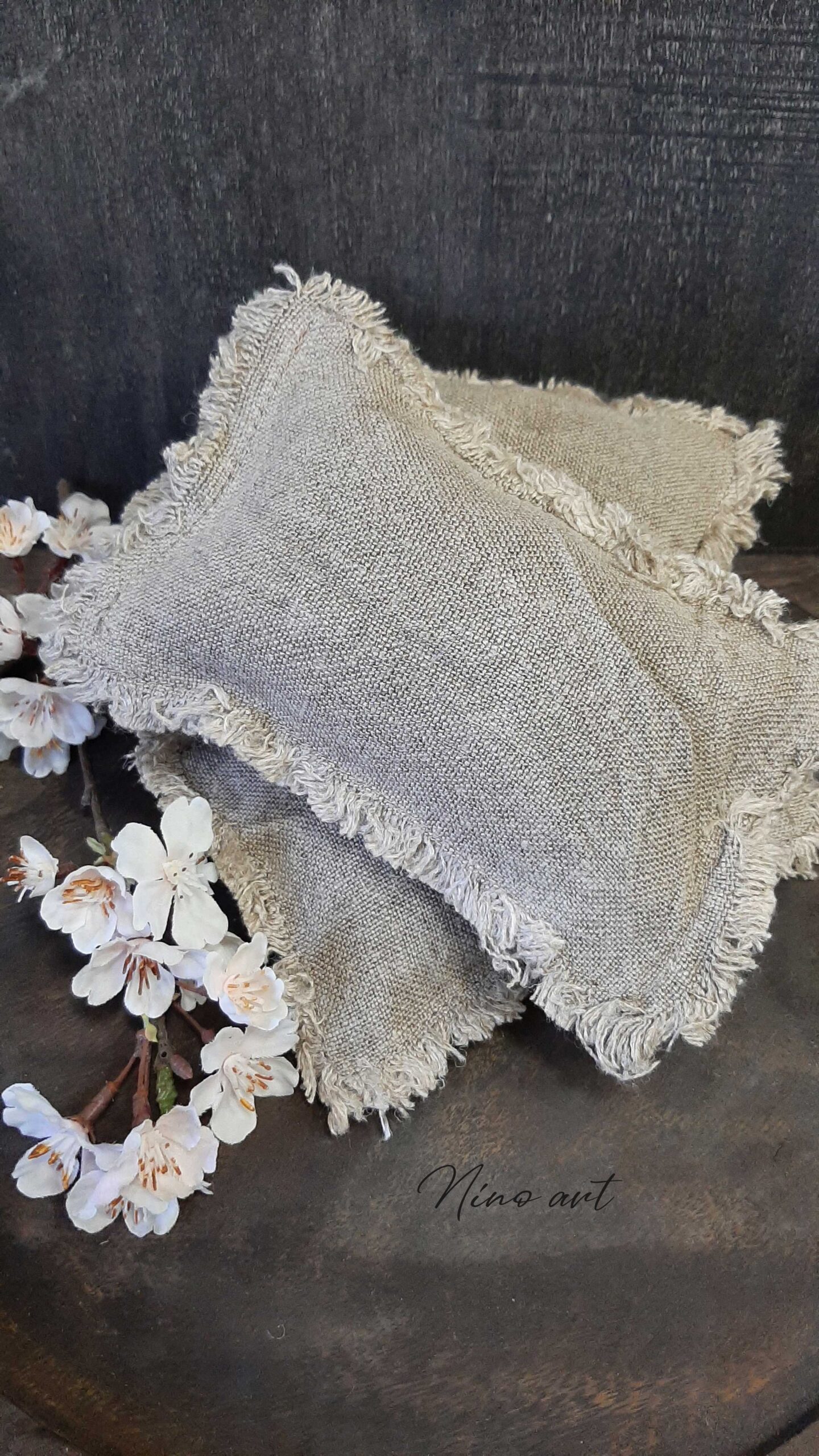 Shabby linnen kussentje van ongeveer 11 x 18 cm, onbedrukt