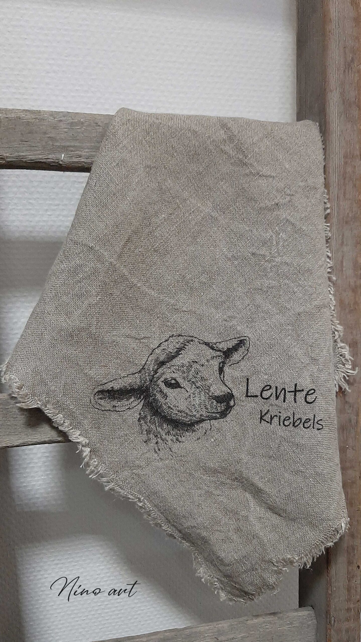 New shabby sierdoek 45×45 cm, alle zijdes voorzien van rafels, bedrukt op de punt van de doek