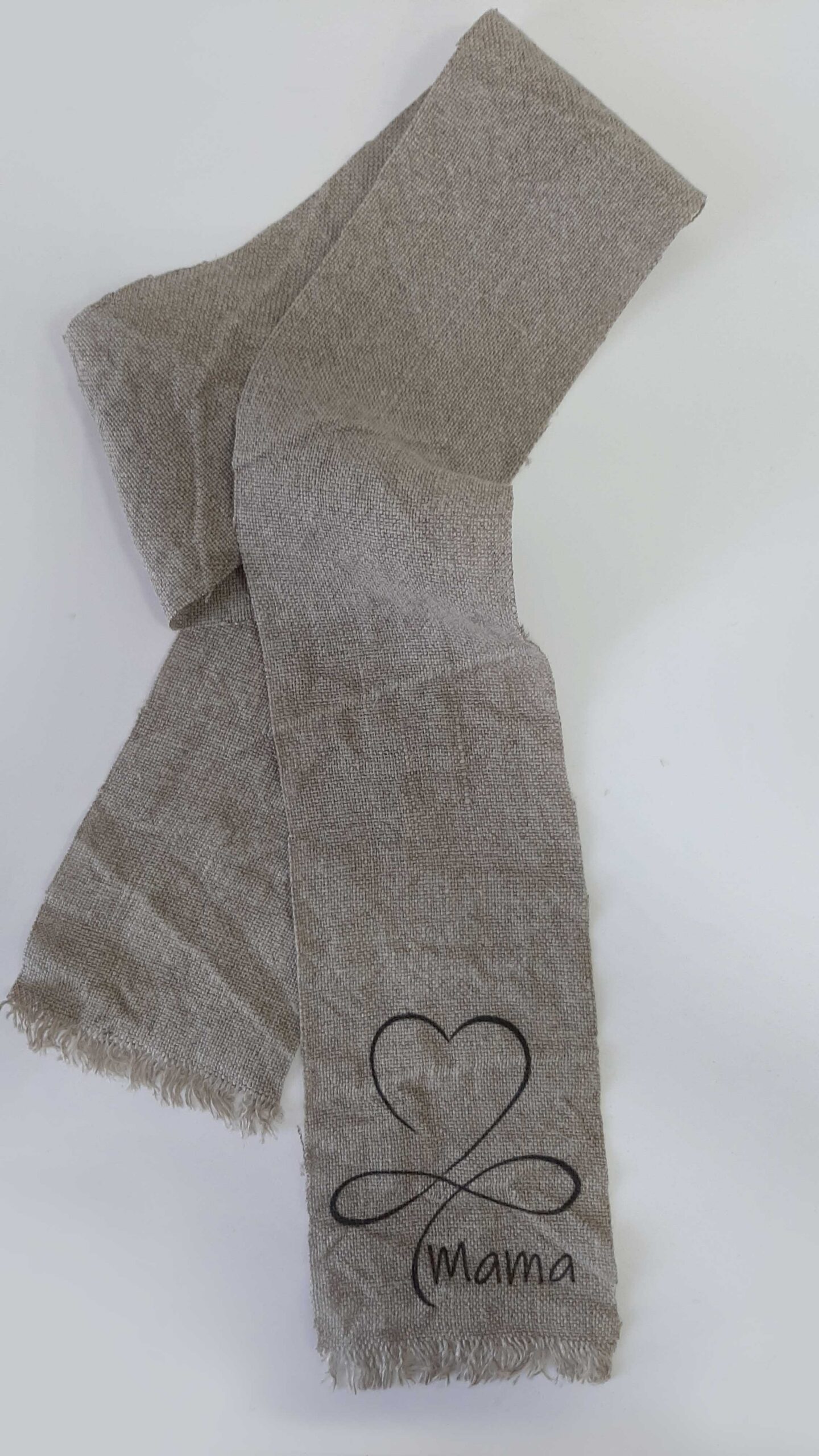 Lint van ongeveer 96 cm lang x 8 cm breedte, op één punt bedrukt op shabby linnen