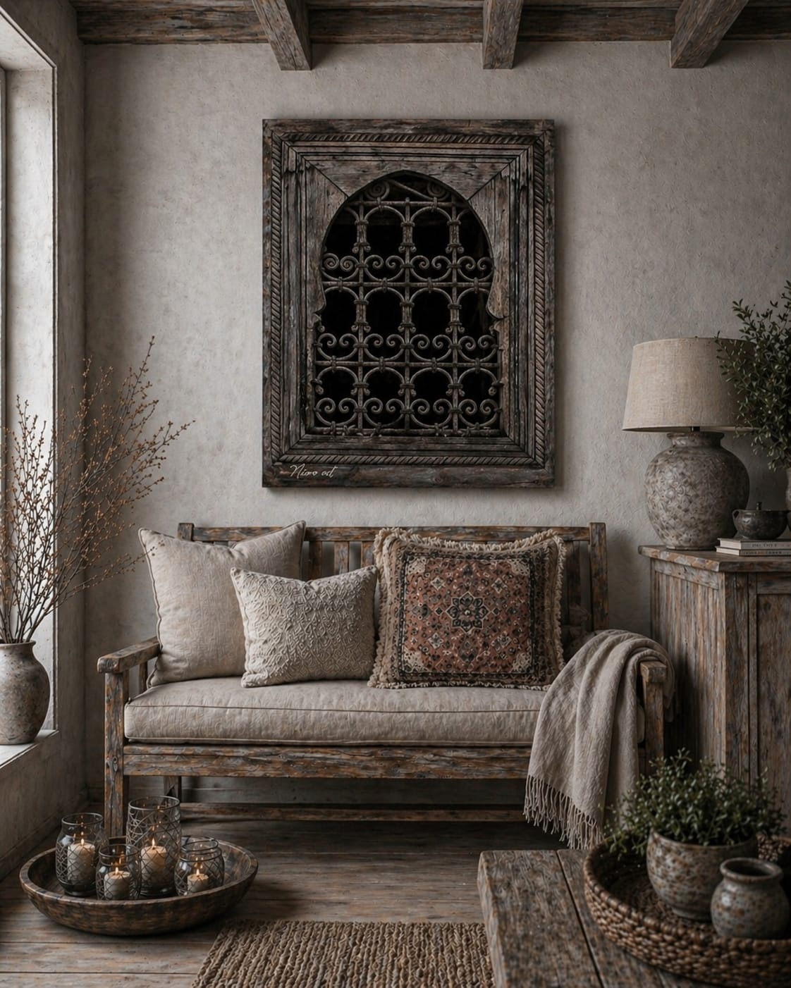 Wil je het effect nog realistischer maken? Bevestig dan onderaan de poster een klein plankje als “vensterbank” Zo lijkt het net alsof je uitkijkt op een echt oosters tafereel en creëer je extra ruimte voor decoratie, zoals een kandelaar met batterij kaarsen