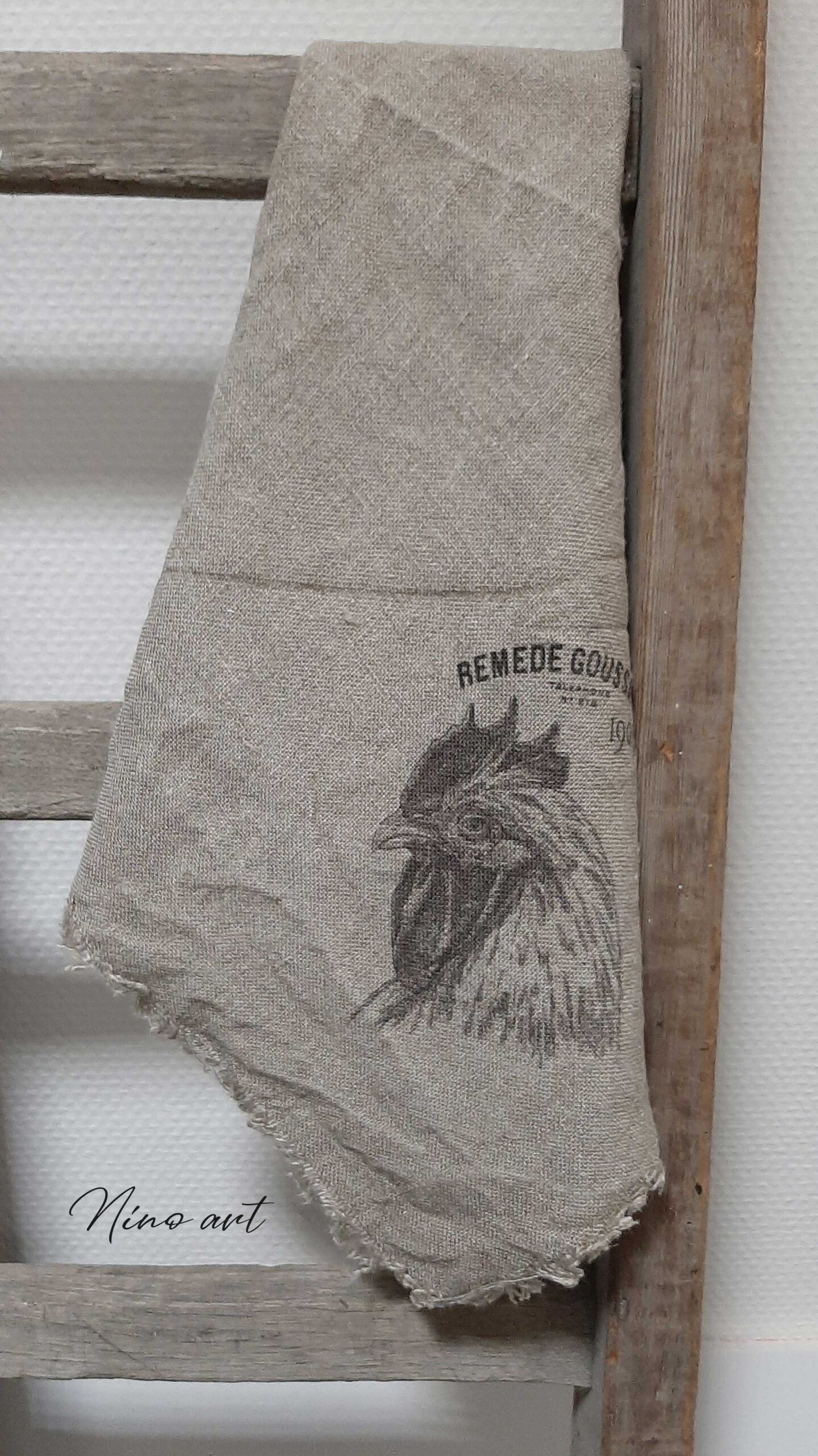 New shabby sierdoek 45×45 cm, alle zijdes voorzien van rafels, bedrukt op de punt van de doek