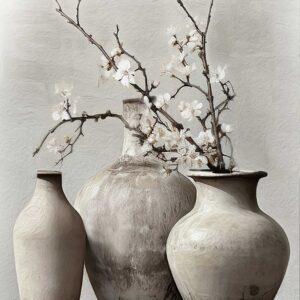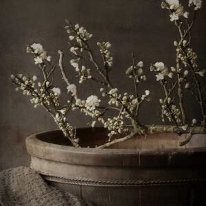 B46 decobordje twee potten witte bloesem A5 of A4 formaat