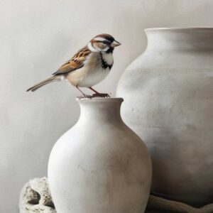 B44 decobordje mus op Witte pot A5 of A4 formaat