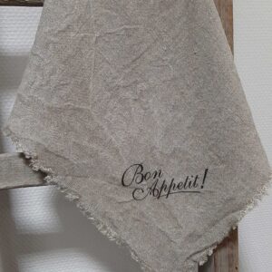 New Shabby – Puur linnen New shabby sierdoek 45×45 cm, alle zijdes voorzien van rafels, bedrukt op de punt van