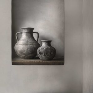 Dit bijzondere kunstwerk toont een verfijnde afbeelding in wabi sabi stijl, waarin imperfectie, eenvoud en natuurlijke schoonheid centraal staan. De