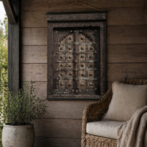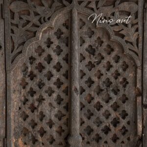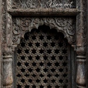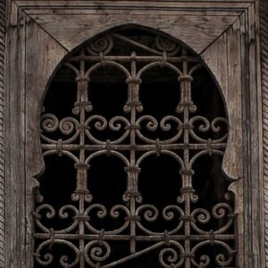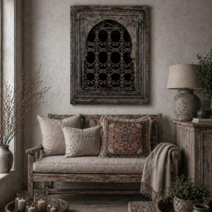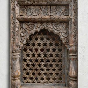 Breng een vleugje oosterse sfeer naar je tuin met onze unieke tuinposter in de vorm van een oud oosters raam.