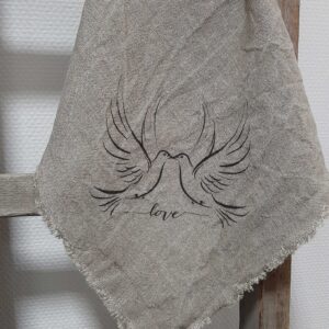 New Shabby – Puur linnen New shabby sierdoek 45×45 cm, alle zijdes voorzien van rafels, bedrukt op de punt van